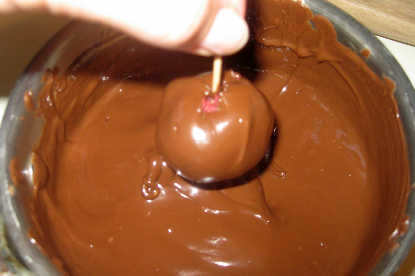 Place a toothpick in the cake ball and dip it in the chocolate.