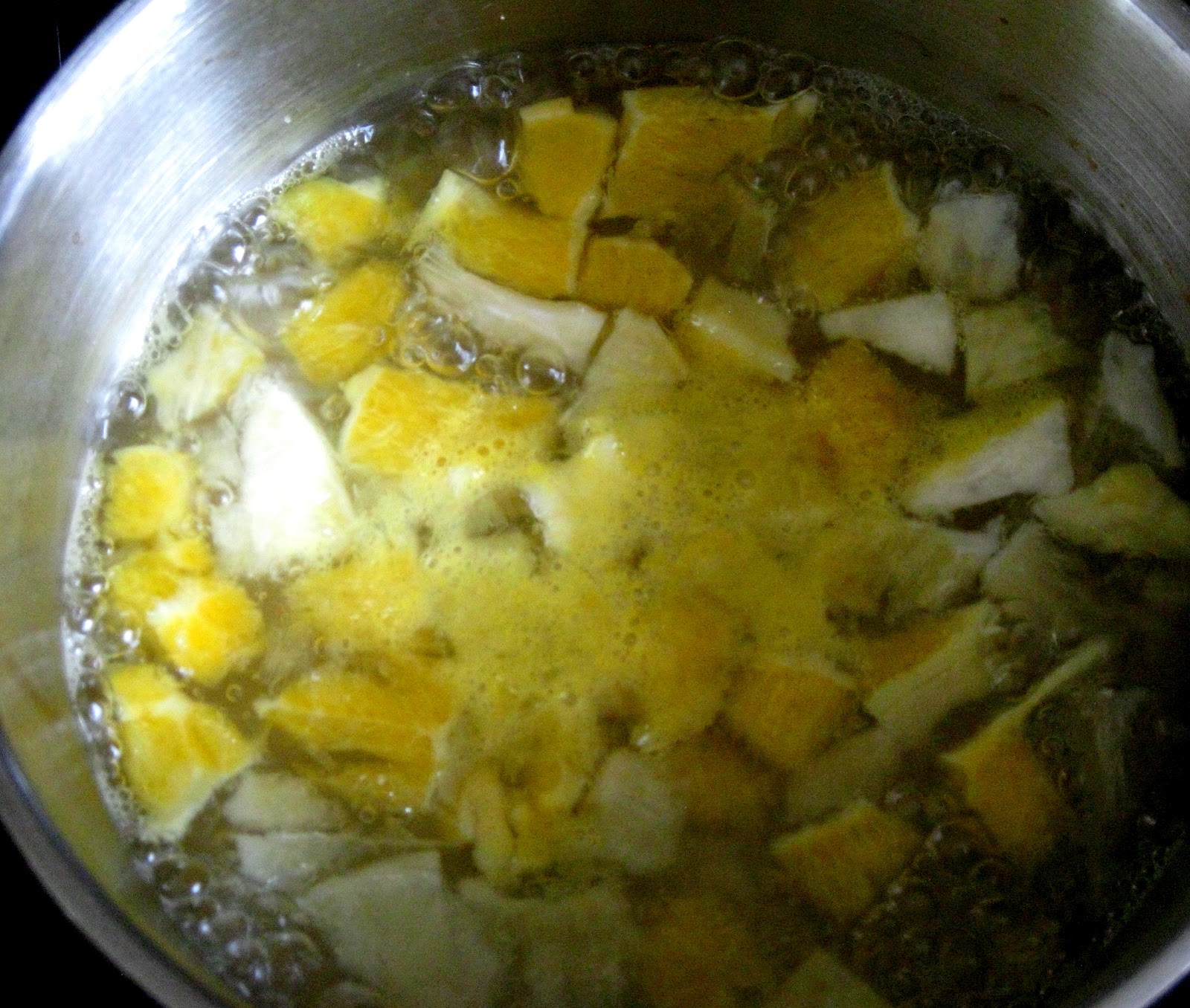 Hi Debbie :) Thanks for visiting. I peeled the orange and lemon when I made this batch, but you actually don't have to - just cut them up and then boil the fruit. So easy!
