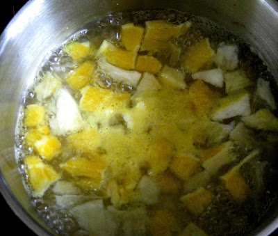 You don't have to peel the fruit, but I did when I made this batch of hairspray.