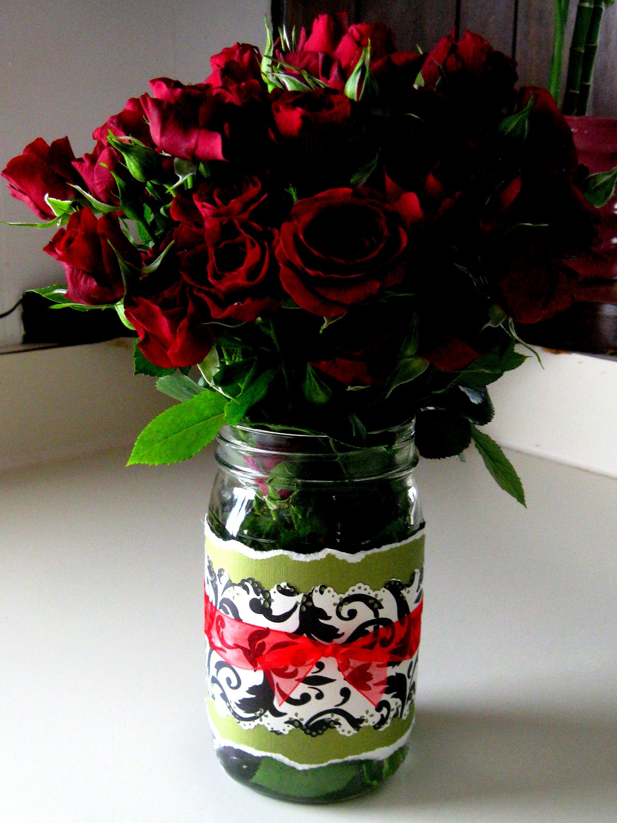 Cut a piece of fabric large enough to fit over jar. Tie the ribbon around the top.