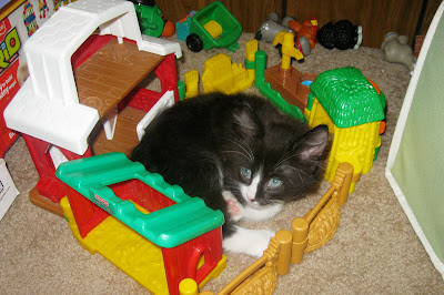She is definitely a cutie with her half white and half black nose and she is quite the whiner. If you leave her alone for 1 minute she starts crying for someone to stay with her. Sebastian (the cat lover) will have to come over sometime and play with her.