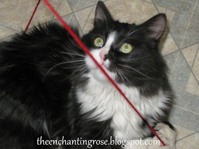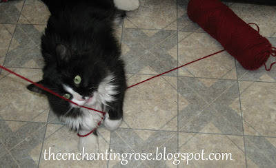 Hi Stephanie, what a cute little project. There is nothing more sweet than a big fluffy black and white kitty playing with red yarn! Pop! I hope you have a wonderful monday afternoon. Delisa :)