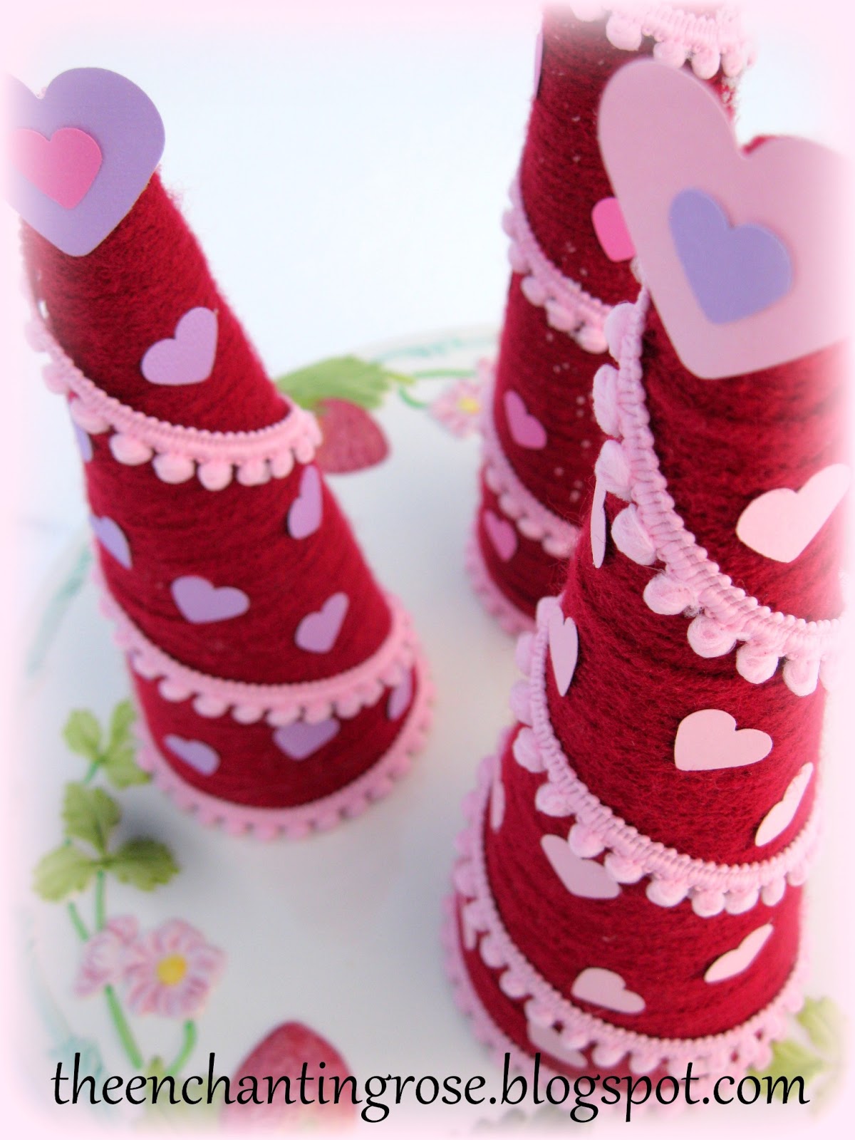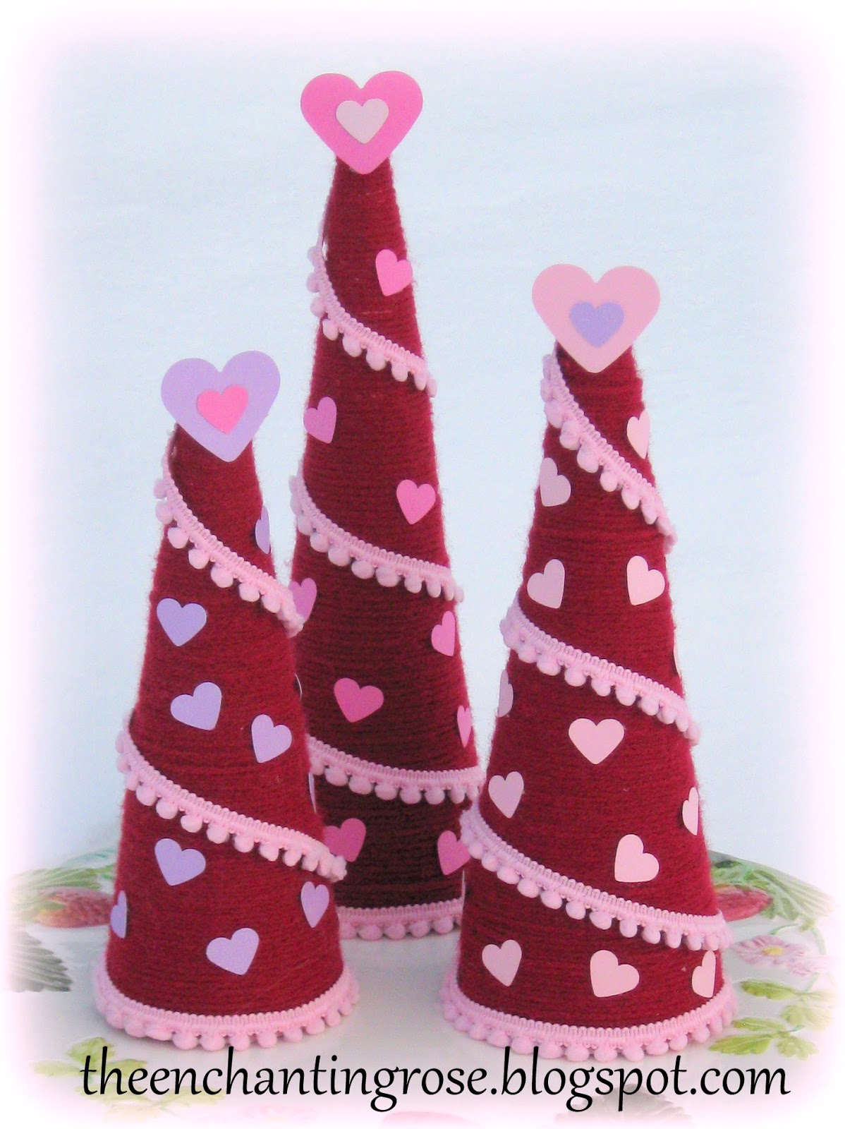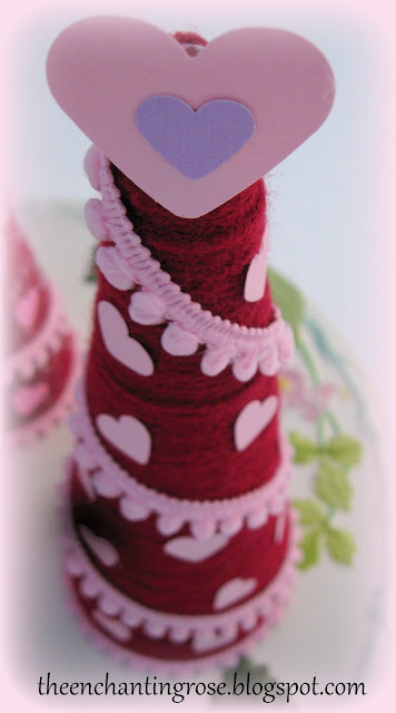 Love the pink pom pom garland. I have a couple of yarn cones that I didn't throw away. I thought that perhaps I would do something tree-ish for Christmas with them. Too many gifts being produced this year so I never got to it. If I can easily find them I think these would look wonderful on our Valentine breakfast table. Well done! :)