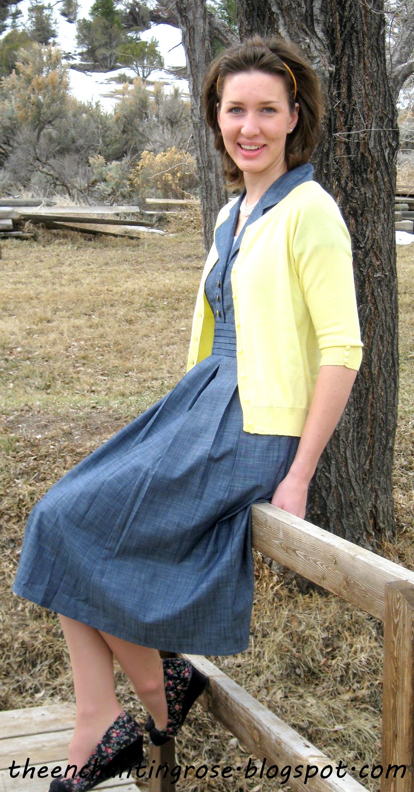 Lovely dress on you! Love it with the yellow sweater too. Thanks for sharing!