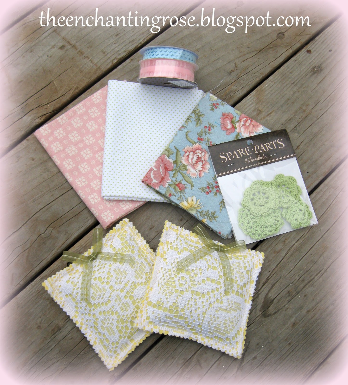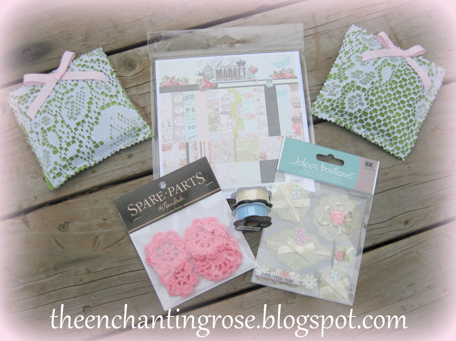Natalie won the rose paper, stickers, ribbon, crocheted flowerd and lavender sachets.