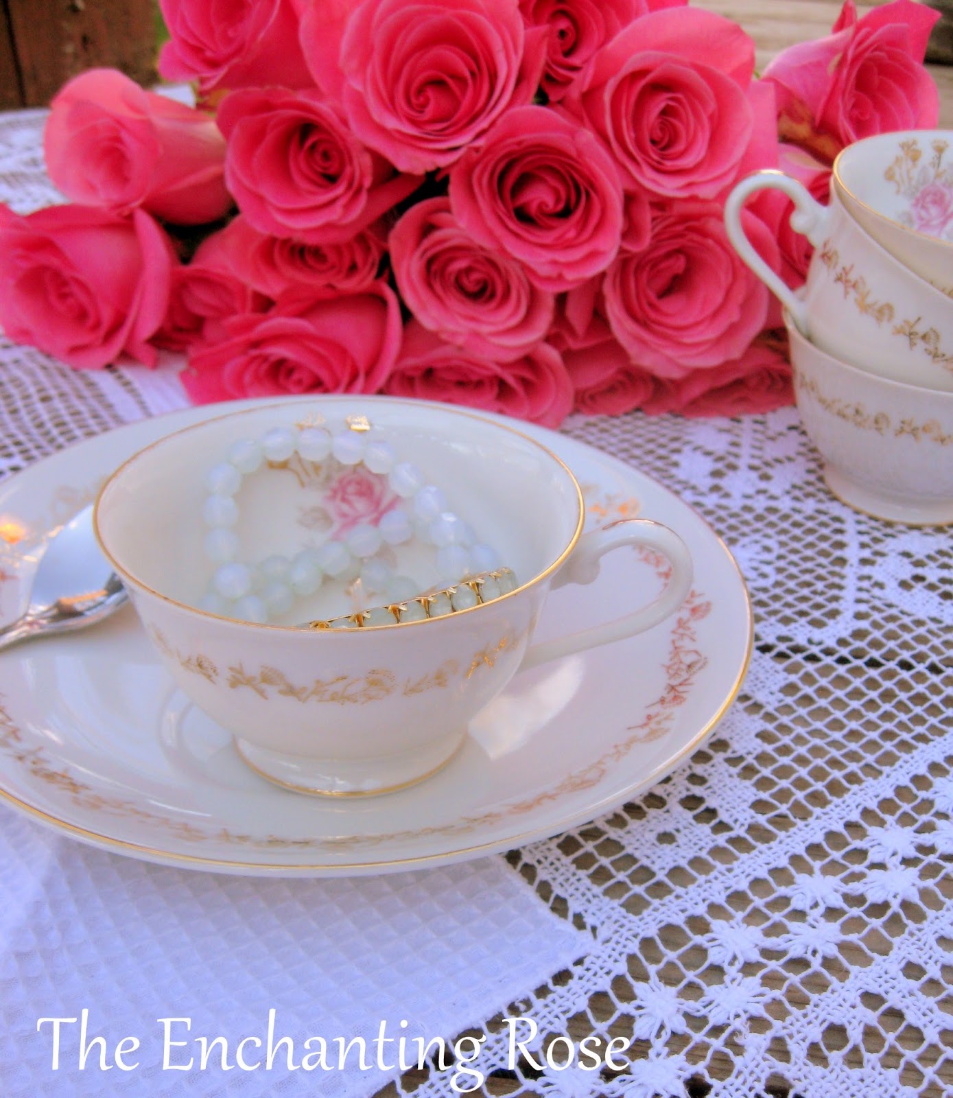 These very pretty tea cups and dessert plates were tucked away on a shelf collecting dust.