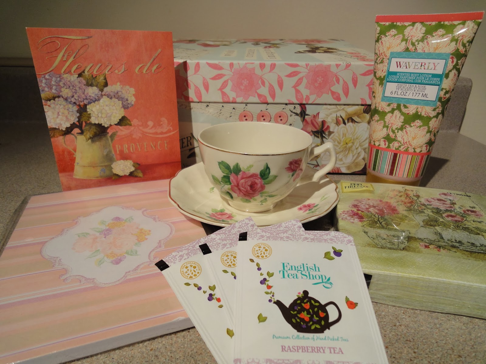 Diane was given this stunning tea cup and tea treats from Nancy.