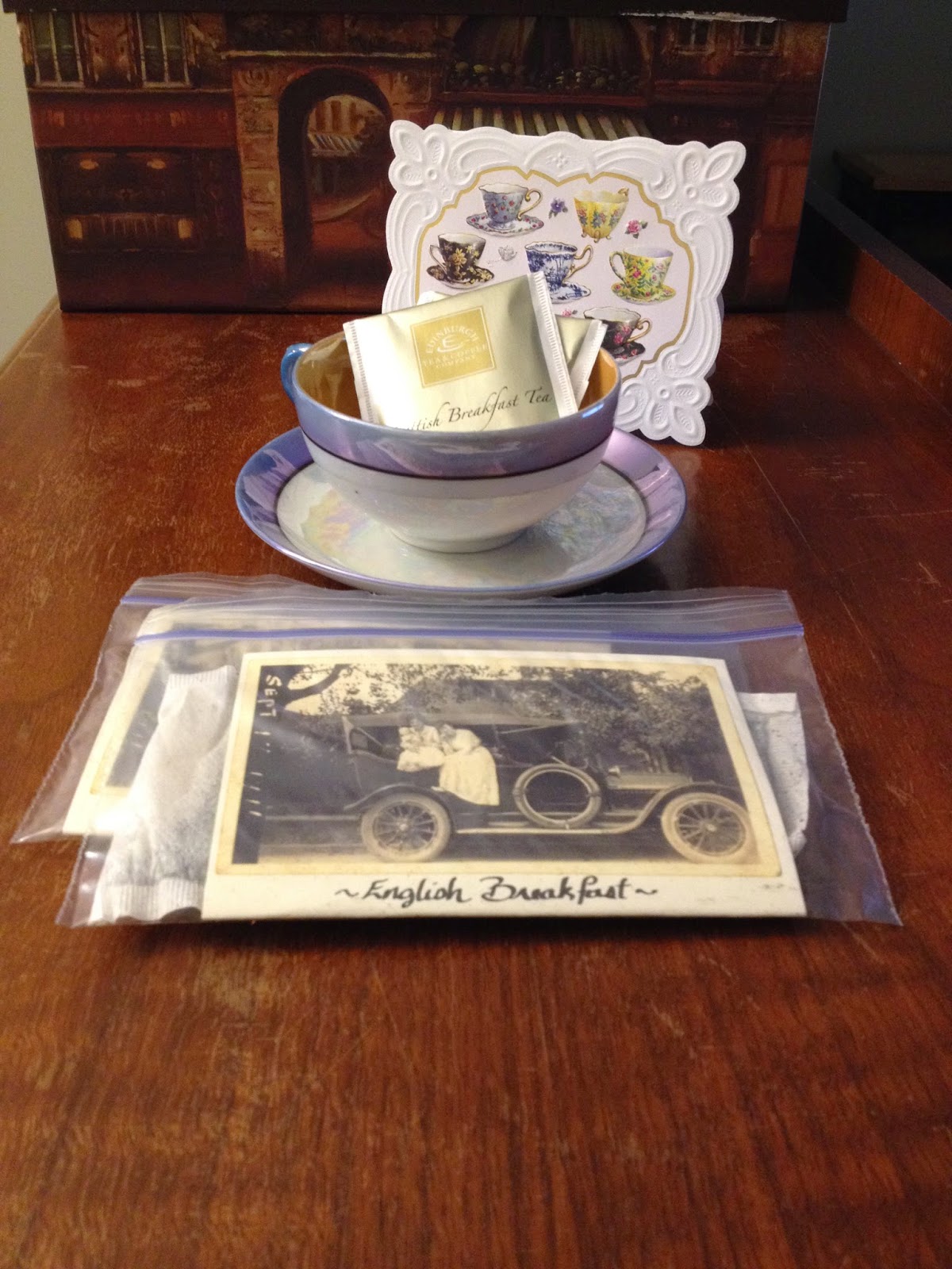 Nicole got a lovely tea cup and beautiful old pictures from Sara.