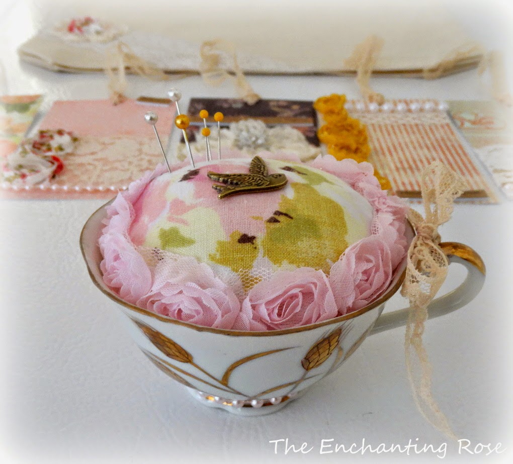 Ooo la la such a pretty giveaway - I especially love your sweet tea cup pincushion - no surprise there with my love of tea cups and all things roses too!
