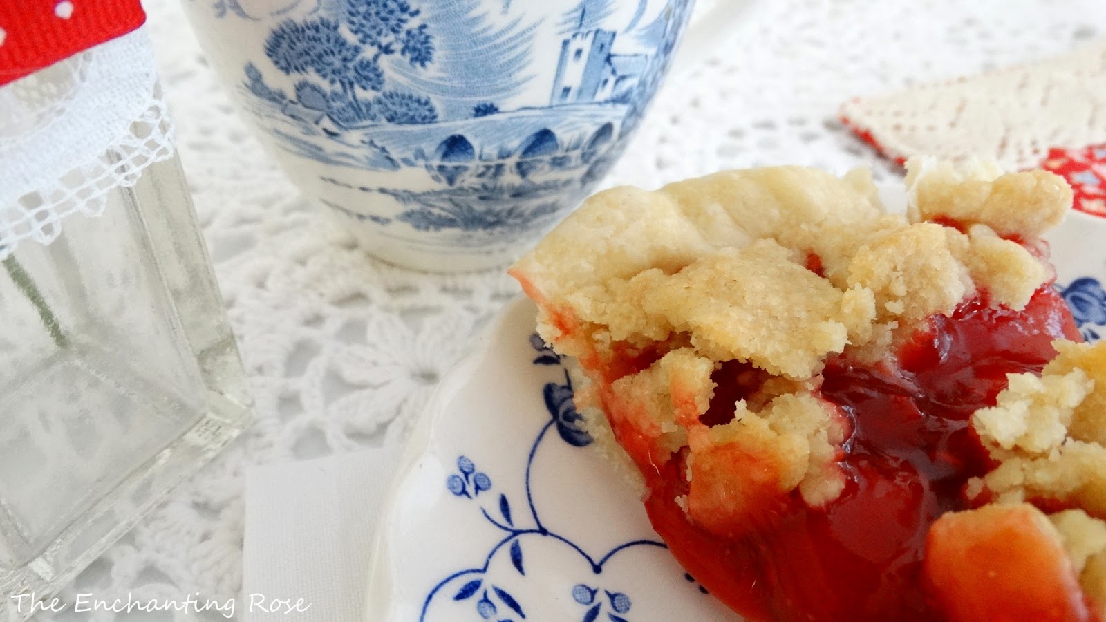 Looks like a wonderful Cherry pie. and of course I love that Blue and White teacup and plate.. adorable little coaster. Happy Weekend with love Janice