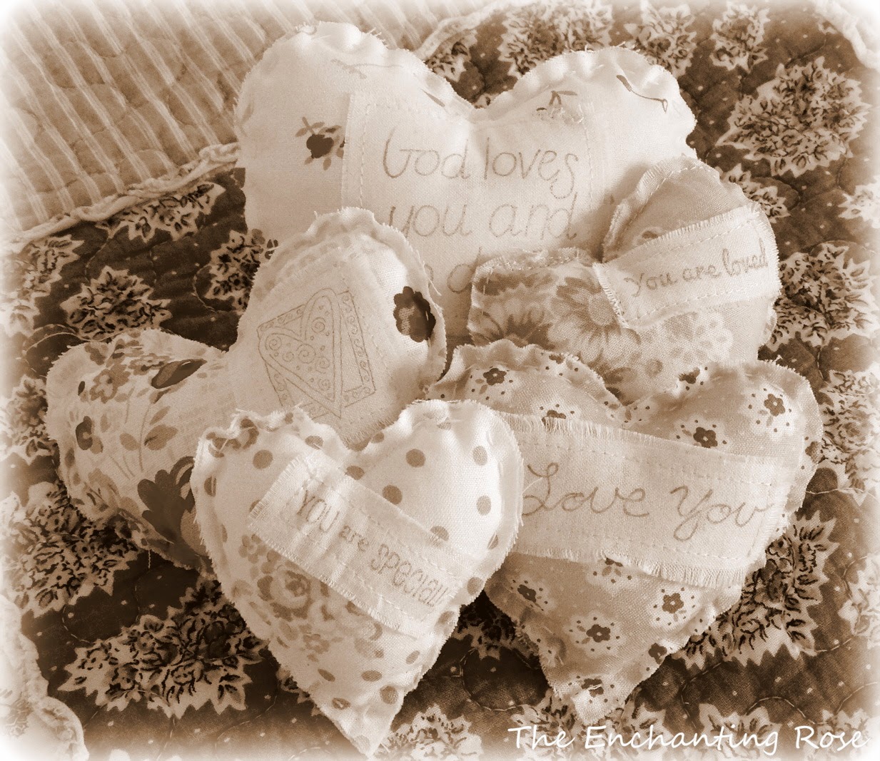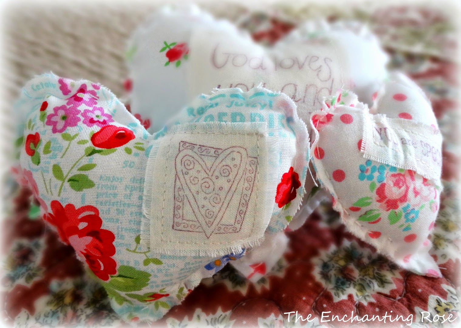 Sweet Stephanie, these hearts are so precious and actually seem doable for someone like me who does not sew. What sort of stuffing did you use? I especially love the one with the heart stamp. These would certainly be adorable in your teacup exchange, or as a giveaway. Perhaps tied with fishing line to a branch and hung from a window...oh the possibilities! I'm sure the young lady will love them!