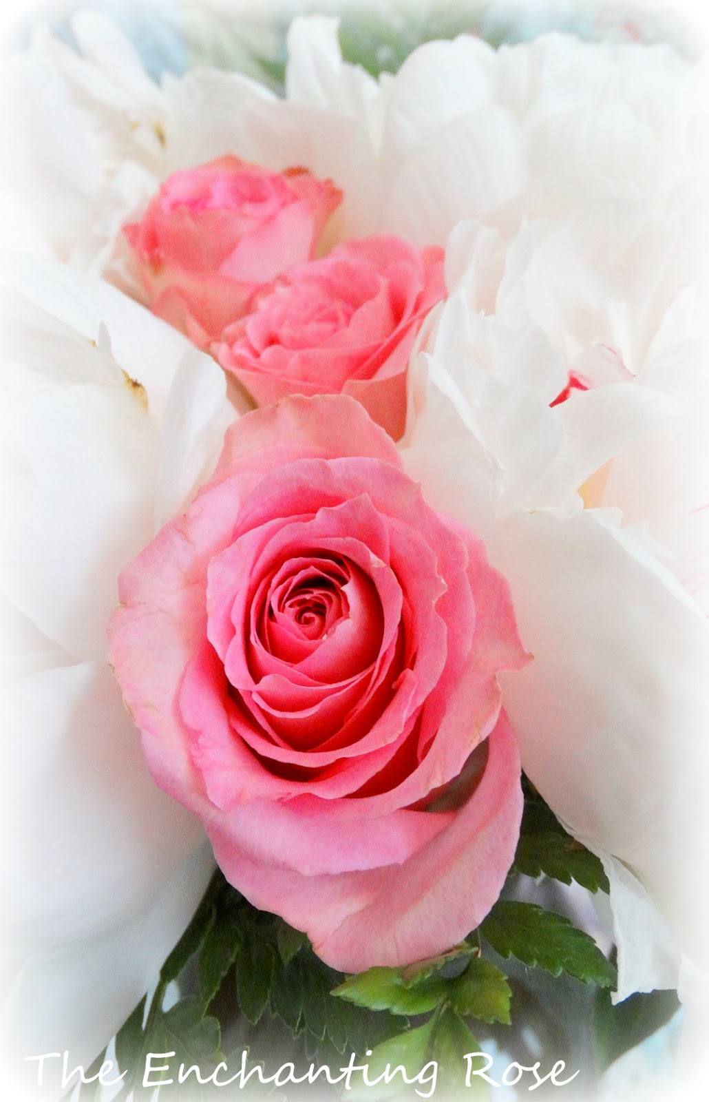 Such lovely flowers on here today. I am wondering, are those peonies and pink roses? I do love the rain, and it's supposed to rain here this weekend. That would be nice, as we are in need of it in California.