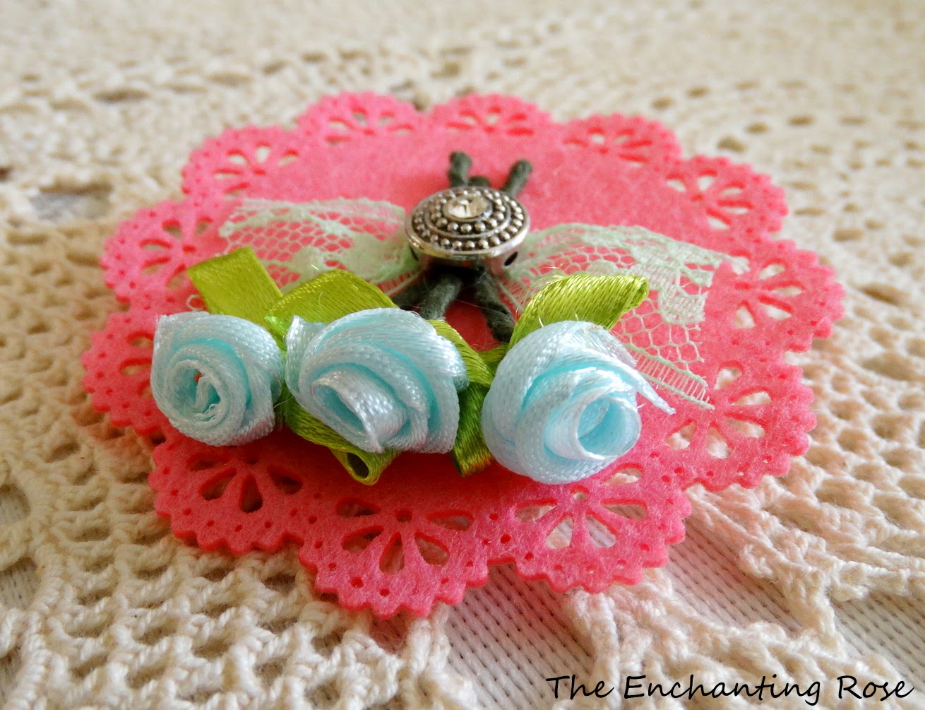 For the other pin I made a lace bow which I hot glued on,