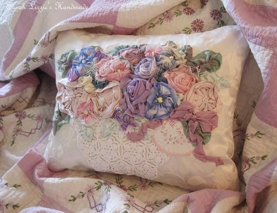 showed us her delightful pillow with a ribbon bouquet sewn onto the front.