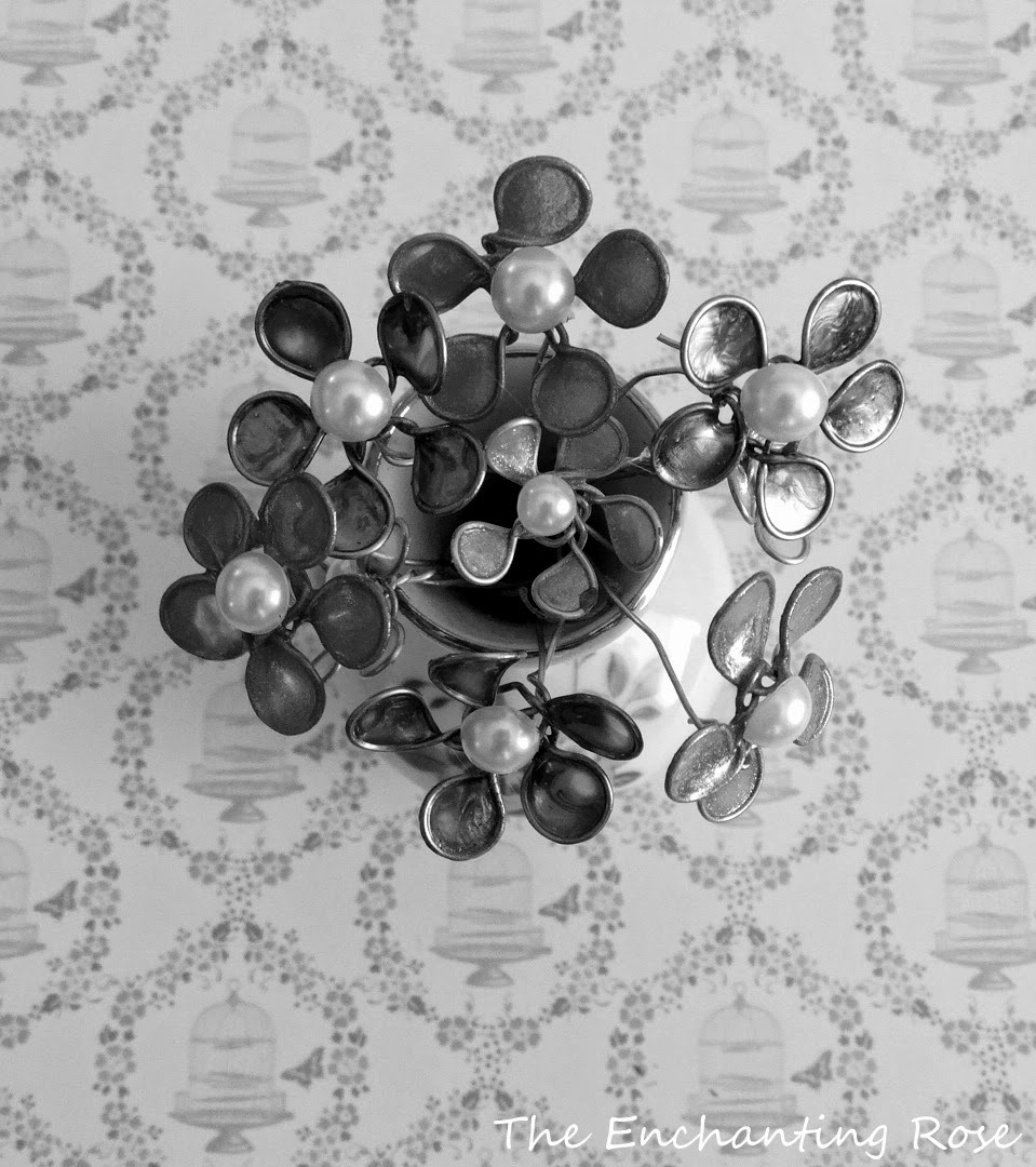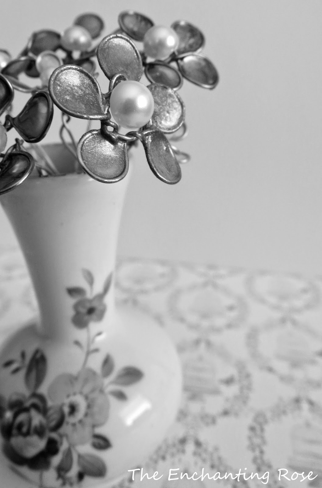 These wire flowers are delightful, Stephanie. And the pearl in the middle adds a special touch, indeed. Your black and white photos are so pretty, but the last one in color made me smile. Color in our lives is such a beautiful thing.