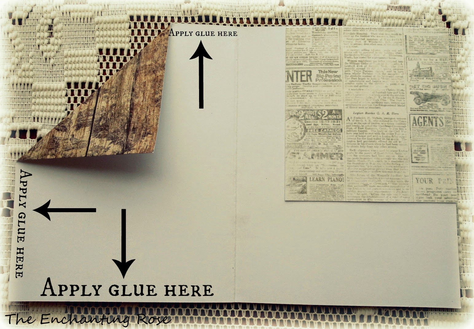 Now apply glue to where the arrows are pointing;