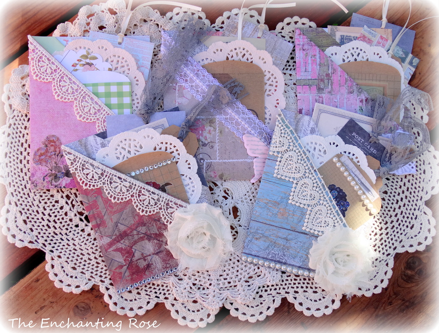 I just love this idea! What a wonderful way to send a letter and create a keepsake. They are so pretty and a good way to use up bits and pieces of lace, pearls, etc. Thank you so much for sharing!
