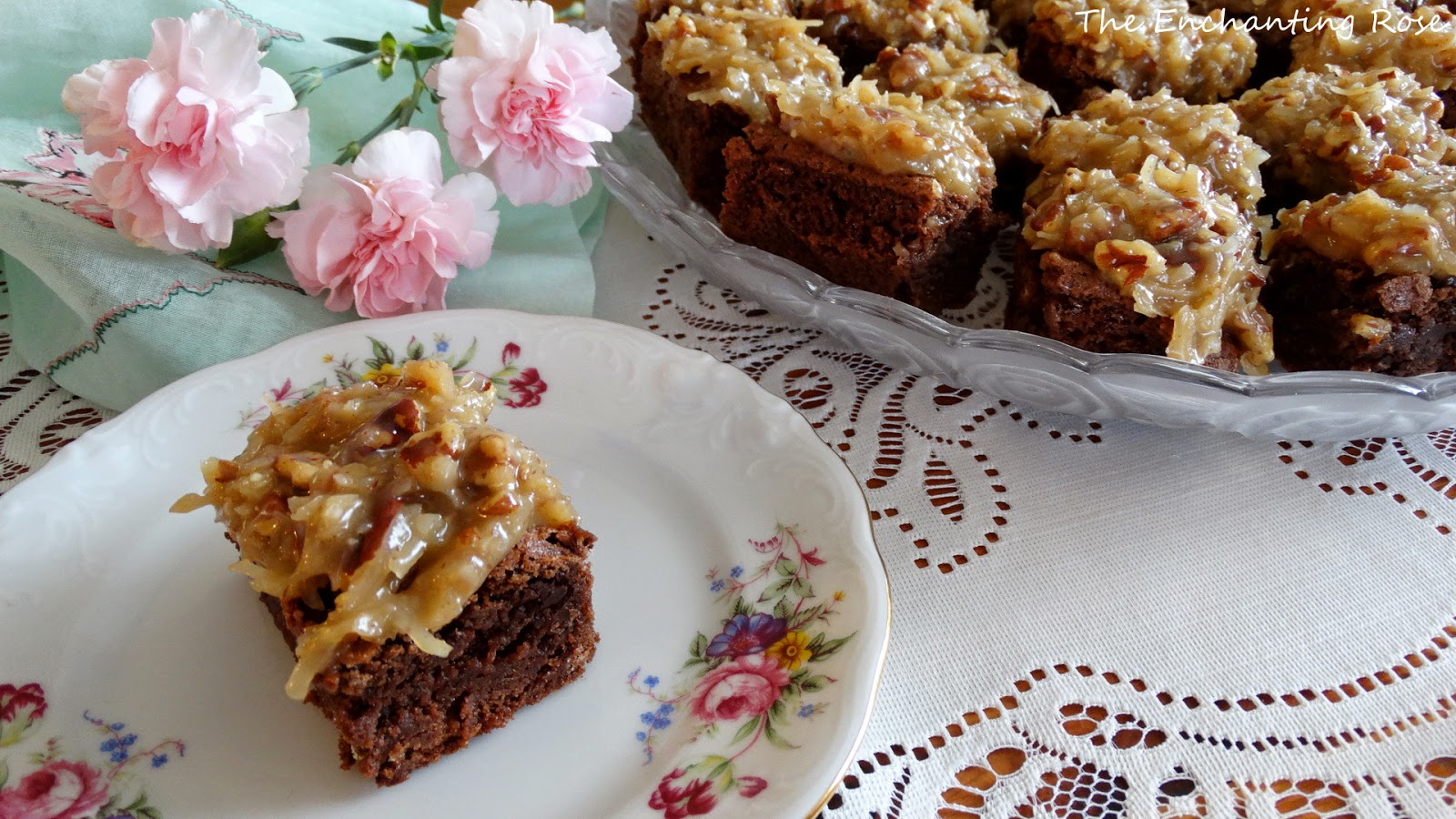 I love German Chocolate anything - so those brownies look heavenly! Lovely pictures as well - makes me want to have a tea party!