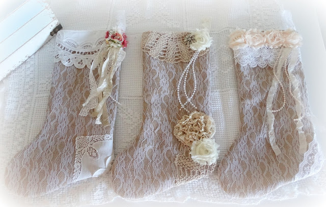 Wow, you have some new holiday totes! I love those lovely lace Christmas stockings.