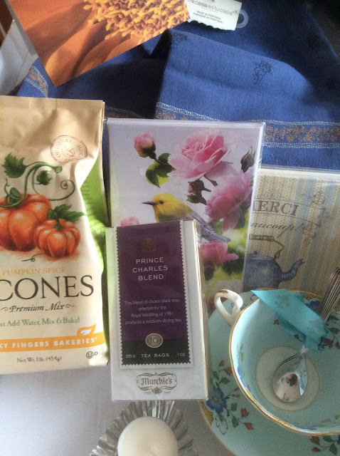 Thanks so very much for creating and organizing this lovely teacup exchange! I was serendipitously guided to your blog by the Father above...just two days before registration closed! I immediately signed both myself and my Mom Patricia Burlow up. My Mom is a long time collector of beautiful things in general and tea cups in particular...and this past year she has had to part with many of her "beautiful things" due to downsizing after the recent death of my Dad...her beloved husband for 58 wonderful years. Ì knew this would be a wonderful event for her to take part in and I hoped it would give her some joy in life again. I began shopping and shopping and searched for just the right things for our exchange partners...all while keeping the wonderful secret from Mom! It did take me a bit longer to finish up wrapping and shipping off the goodies because I have a very badly injured hip and I am scheduled for a hip replacement on nov 20th. It is not easy to do this on crutches but I did it and it all was so wonderful to send off gifts and to receive lovely gifts too...but the very best was seeing the surprized and very happy look on my Mom's face as she opened such beautifully wrapped and thoughtfully chosen gifts from her exchange partner "Marina". She was most especially joyful was when she opened the teacup box and one of her favourite patterns was revealed...she was speechless with happiness and pure joy. This is one of the wonderful "gifts" that this exchange makes possible...Thank you again Stephanie for all your work arranging this exchange and to all of our exchange partners I am so sorry I have not sent the "Thank You" cards yet but they will be in the mail shortly. Preparing for my hip replacement has been very difficult this time and then I got shingles...oh my...they are NOT fun! I will be mailing thank you notes soon...now you know why they are late but life has brought many surprises this year...lol...