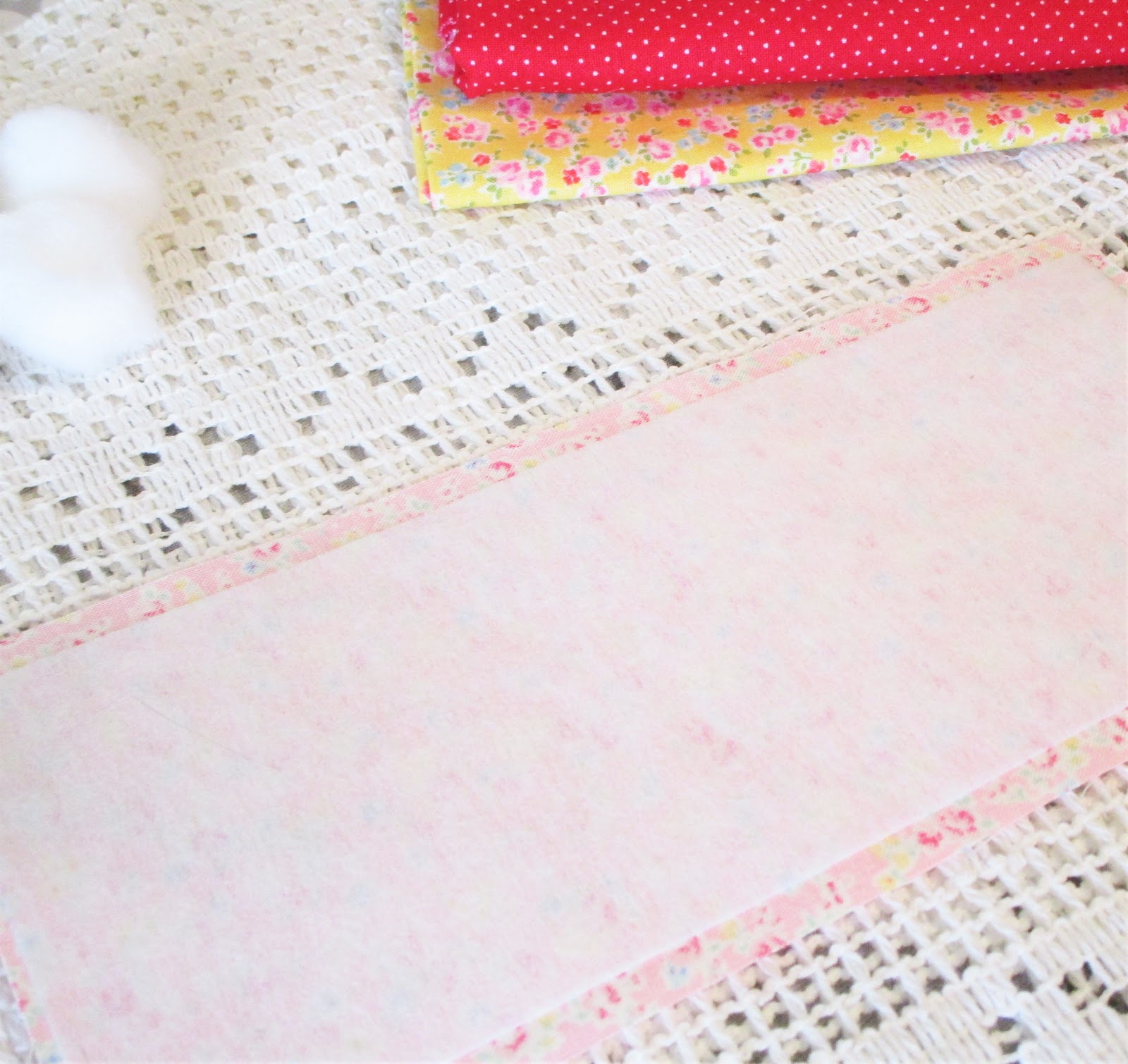 Iron on a piece of fusible interfacing that is 5 1/2 x 3-inches
