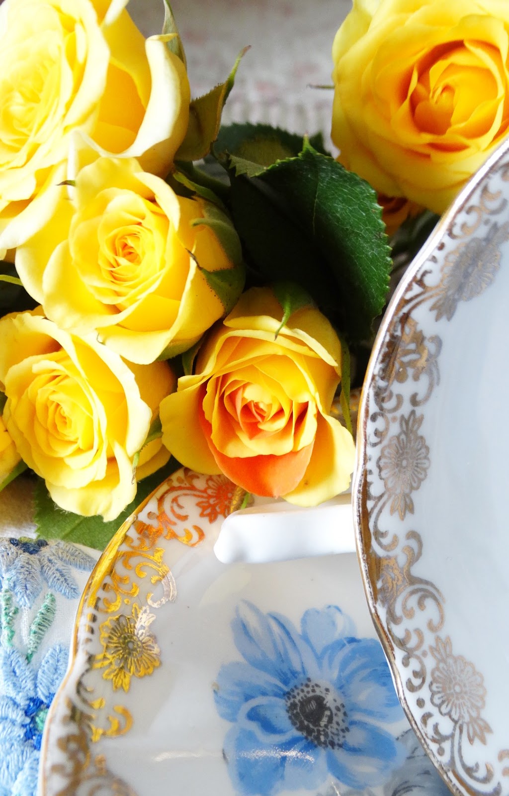 Oh Stephanie, wherever do you find your tea cups? They are always so unique and stunning. I'm not sure why, but blue tea cups are the prettiest to me. This one goes well with your yellow roses.